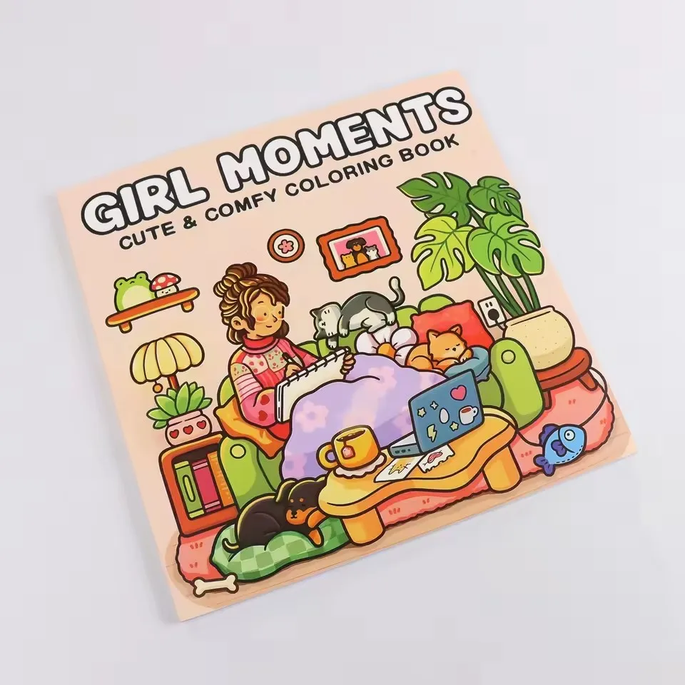 Cozy Atmosphere Relaxing Coloring Book for Adults and Teens Bold Easy-to-follow Patterns and Girl Moments